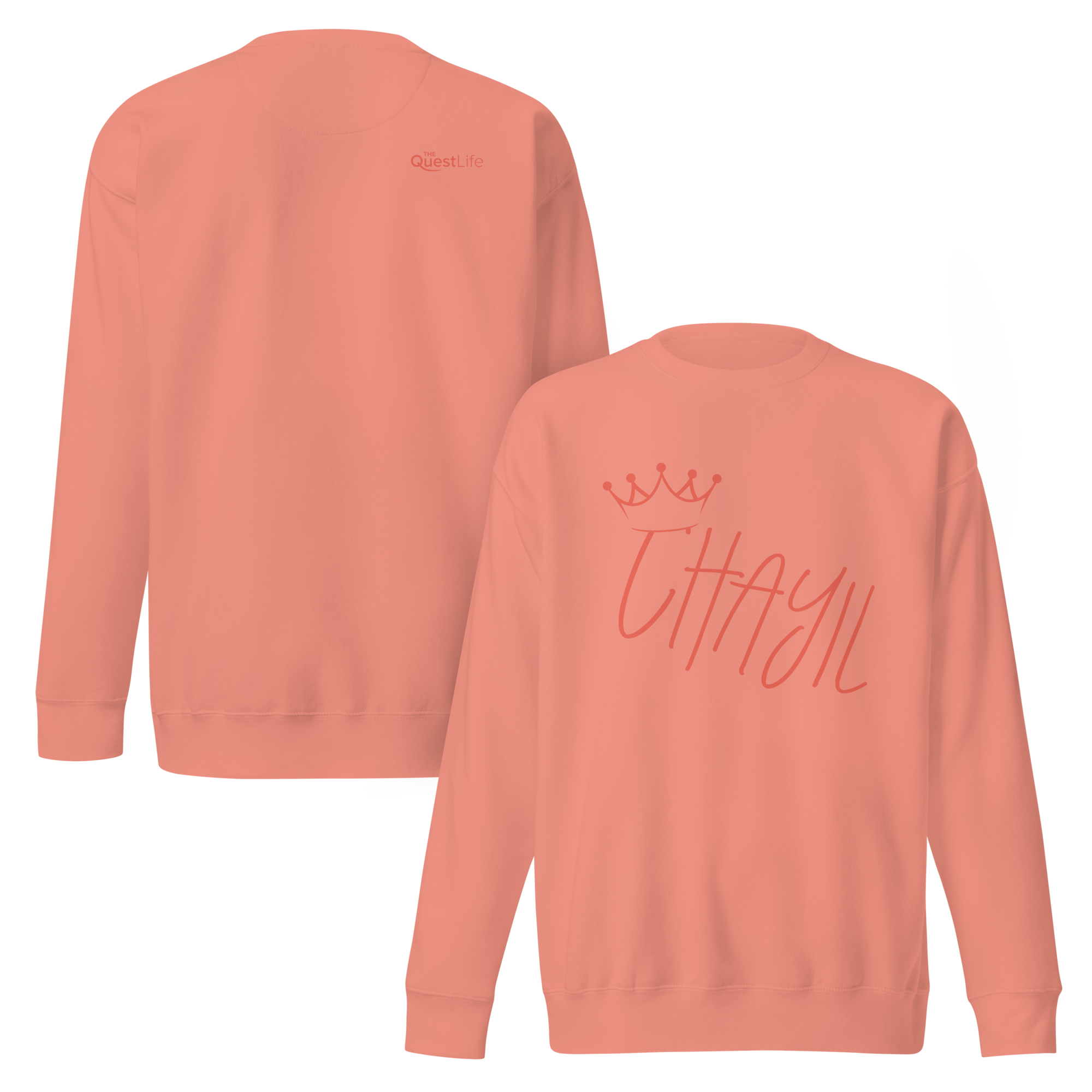 Chayil Crown on the chest, TheQuestLife on the back right shoulder